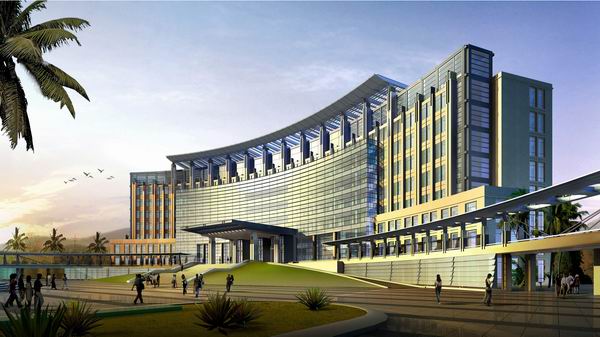 行政辦公區(qū)是由弧形的辦公主大樓、輔屬辦公樓,文體活動(dòng)中心(內(nèi)部設(shè)置游泳池及小型的籃球場)圍合成豐富的景觀空間,辦公主大樓形成區(qū)域的標(biāo)志性形象建筑,半圓形前廣場與城市的主要道路相接壤。